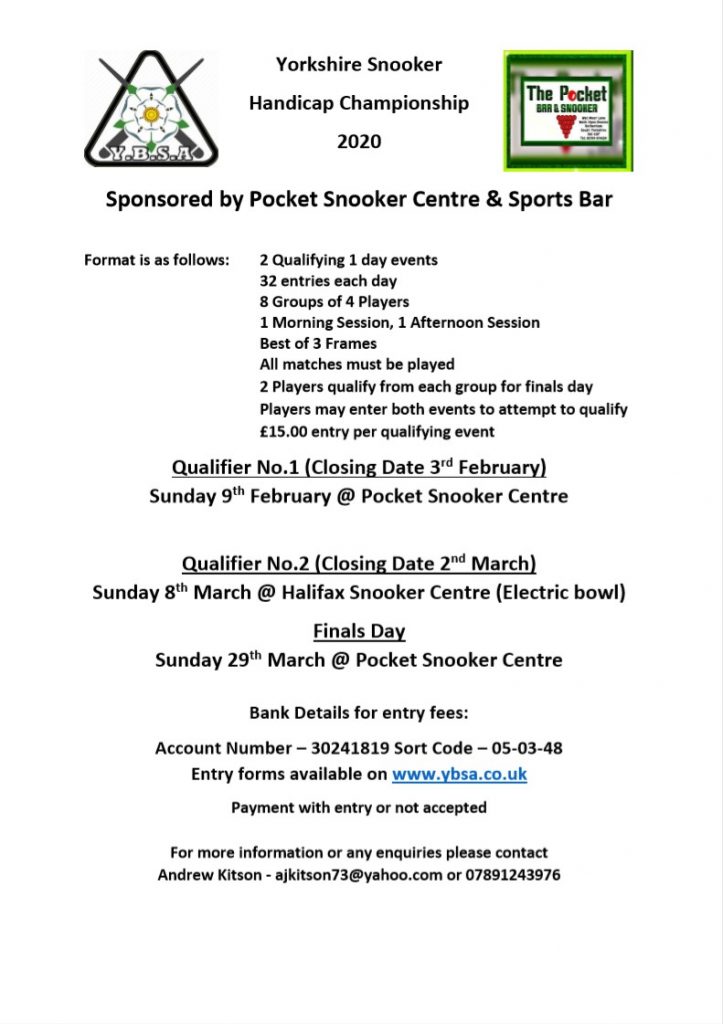 Handicap Championship 2020 News 17th January 202018th January 2020 The 2020 Yorkshire Handicap Championship entry details is now available, please see attached poster with all information provided any queries please contact Andy Kitson contact details on the poster Download handicap poster 2020