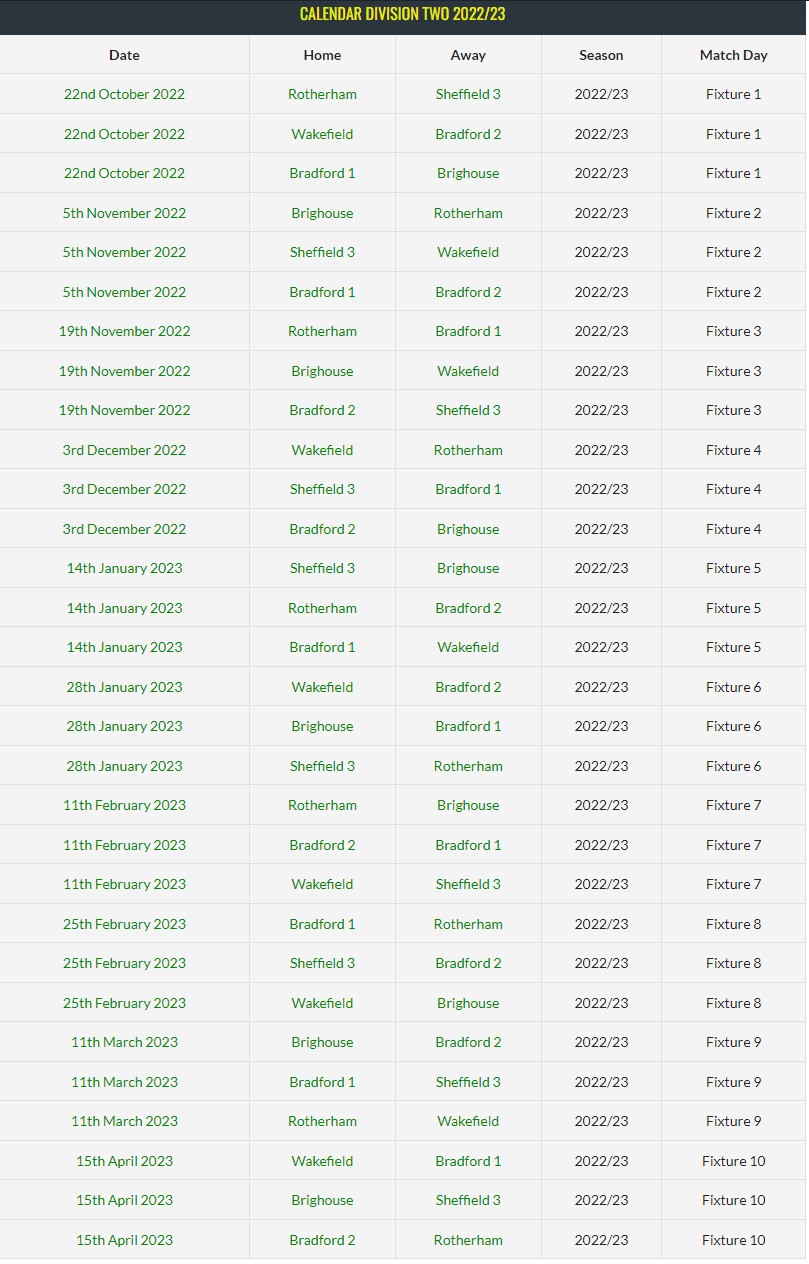 Download entire fixture list for Division 2 2022 HERE