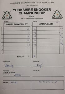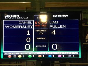 In what was his last match as an amateur for a couple of years at least, York’s Liam Pullen defeated NSC club mate Dan Womersley 4-1 in the final of this seasons Yorkshire Snooker Singles Championship.