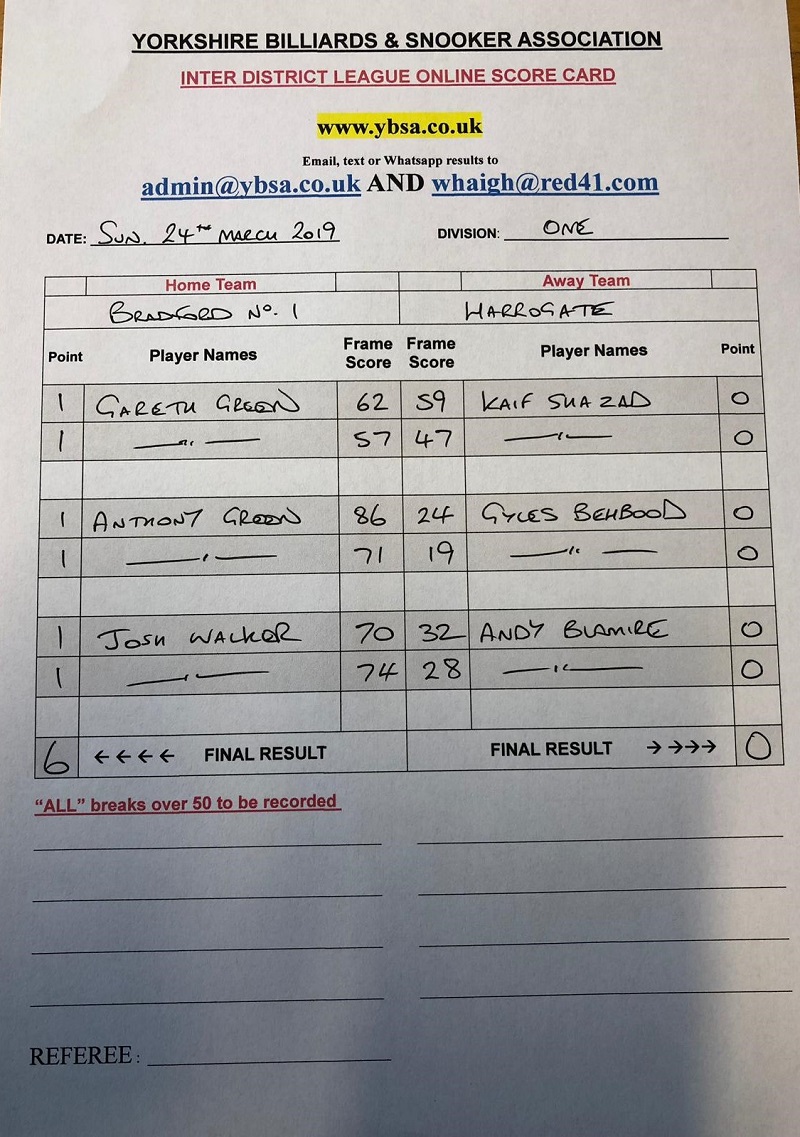 | Harrogate | 2 - 4 | Bradford 1 |