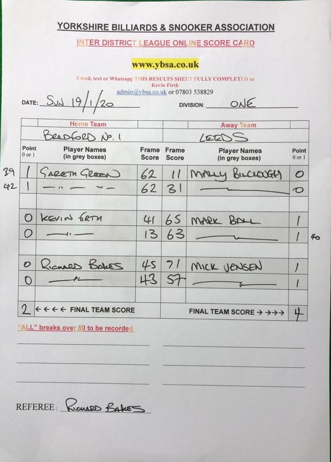18th January 2020 7:30 pm Division One 2019/20 2019/20 Fixture 6