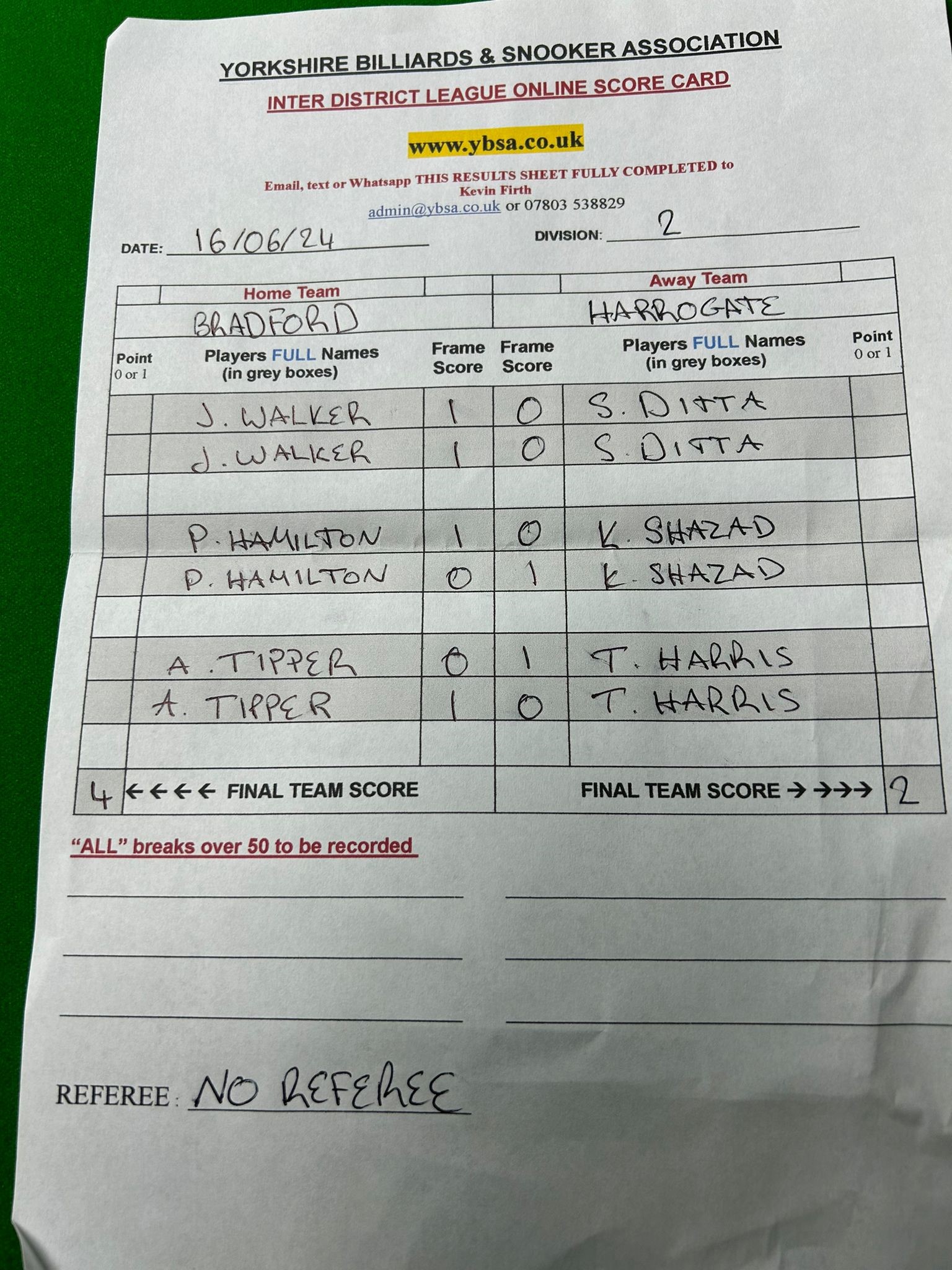 | 15th June 2024 | 7:30 pm | Division Two 2023-24 | 2023/24 | Fixture 10 |