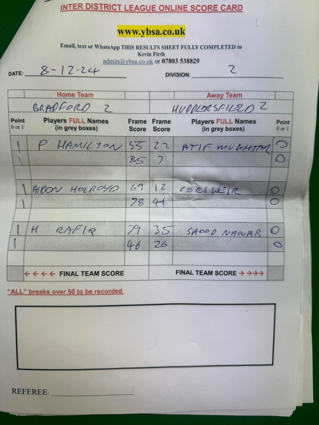 | 7th December 2024 | 7:30 pm | Division Two 2024/25 | 2024/25 | Fixture 6 |
