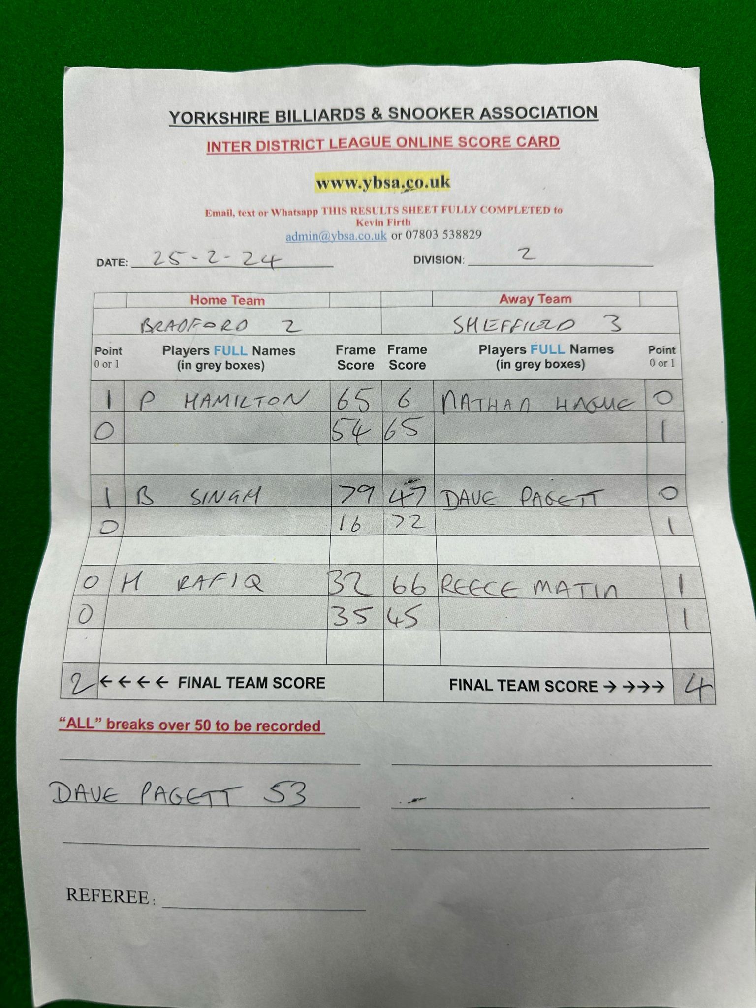 | 24th February 2024 | 7:30 pm | Division Two 2023-24 | 2023/24 | Fixture 7 |