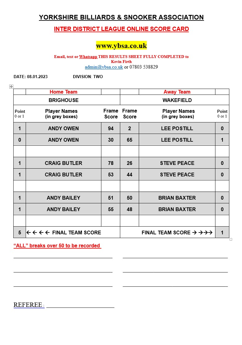 | 19th November 2022 | 7:30 pm | Division Two 2022/23 | 2022/23 | Fixture 3 |