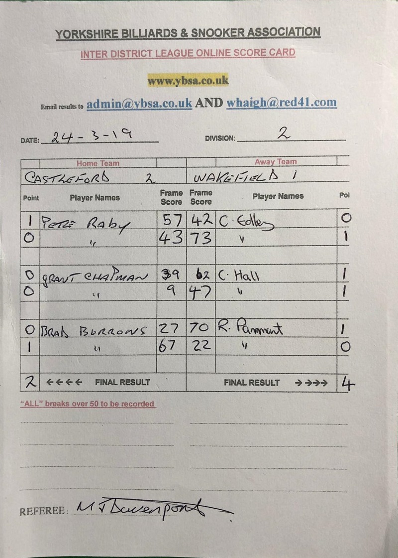 23rd March 2019 7:30 pm Division Two 2018/19 2018/19 Fixture 8