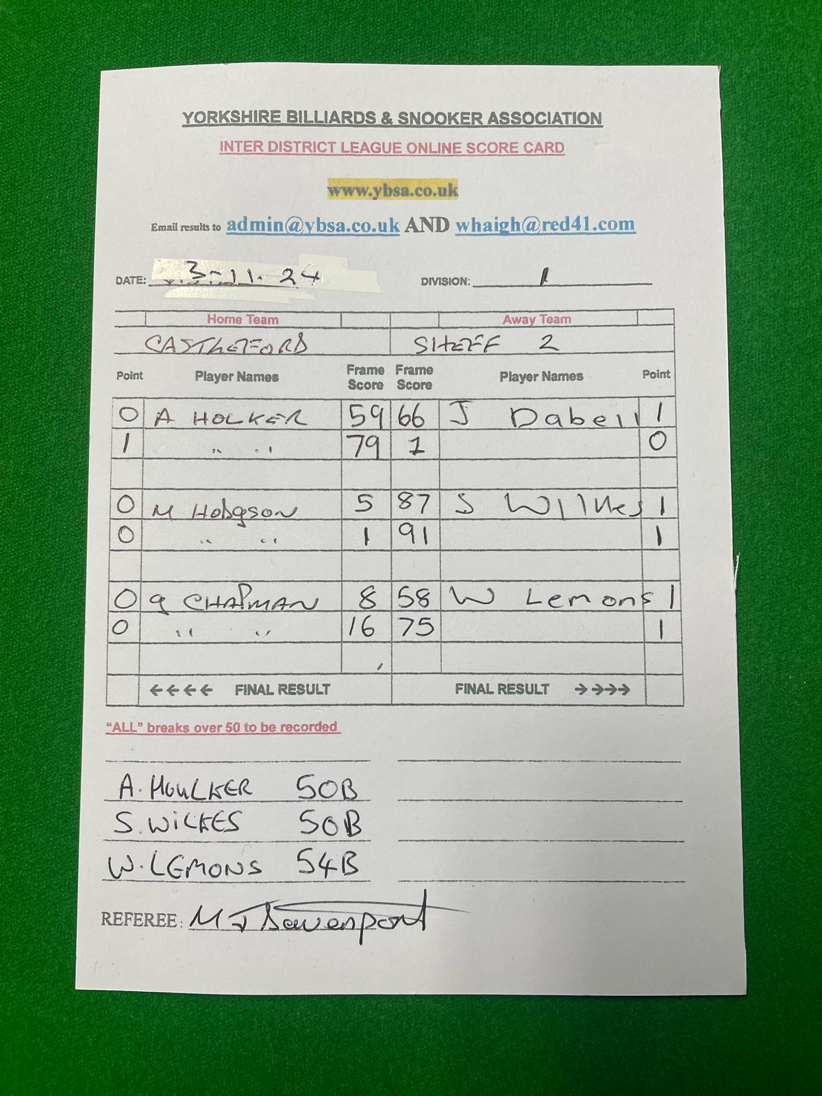 9th November 2024 7:30 pm Division One 2024/25 2024/25 Fixture 4