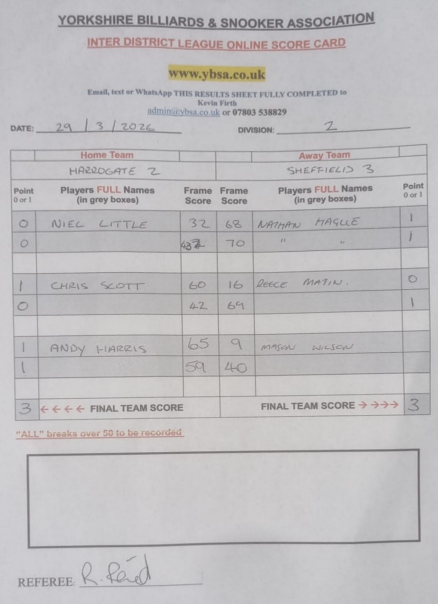 28th March 2026 7:30 pm Division Two 2025/26 2025/26 Fixture 11
