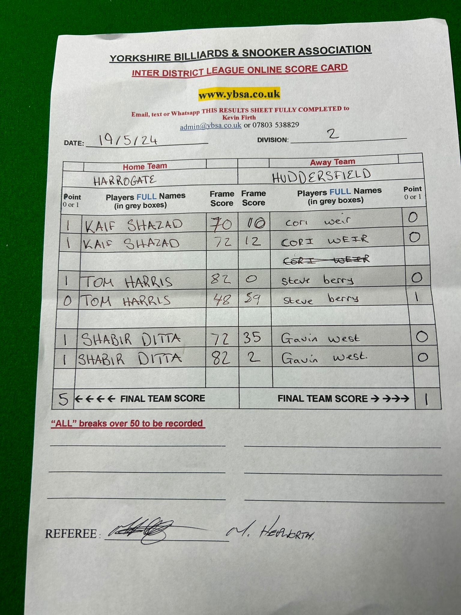 | 18th May 2024 | 7:30 pm | Division Two 2023-24 | 2023/24 | Fixture 9 |