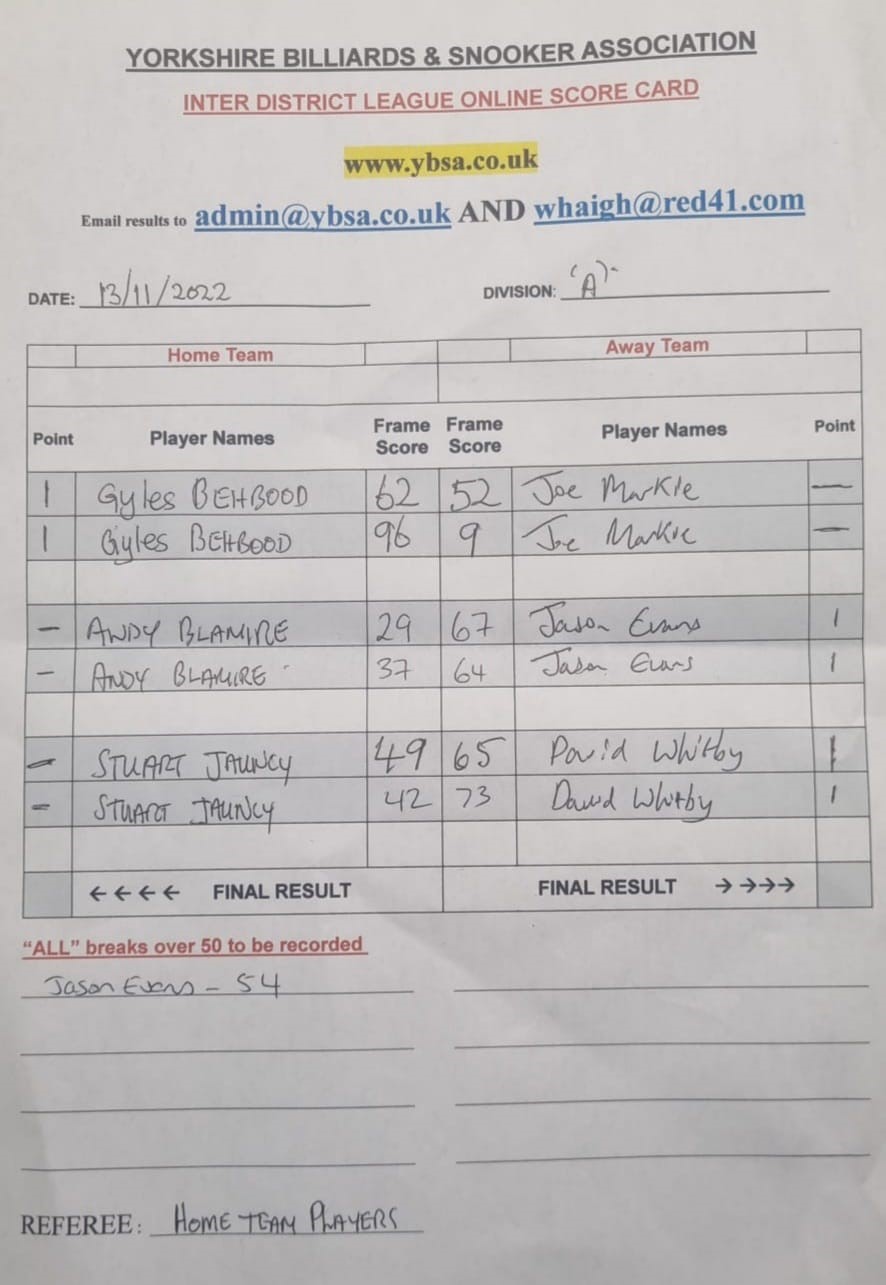| 12th November 2022 | 7:30 pm | Division One 2022/23 | 2022/23 | Fixture 3 |