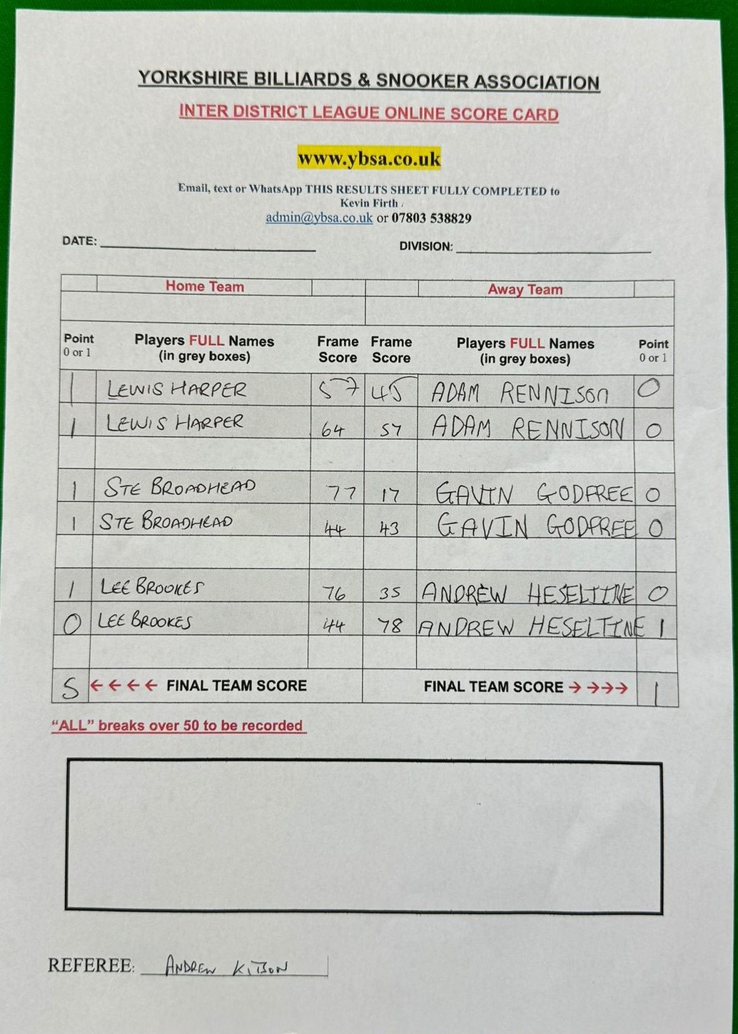 | 14th September 2024 | 7:30 pm | Division One 2024/25 | 2024/25 | Fixture 1 |