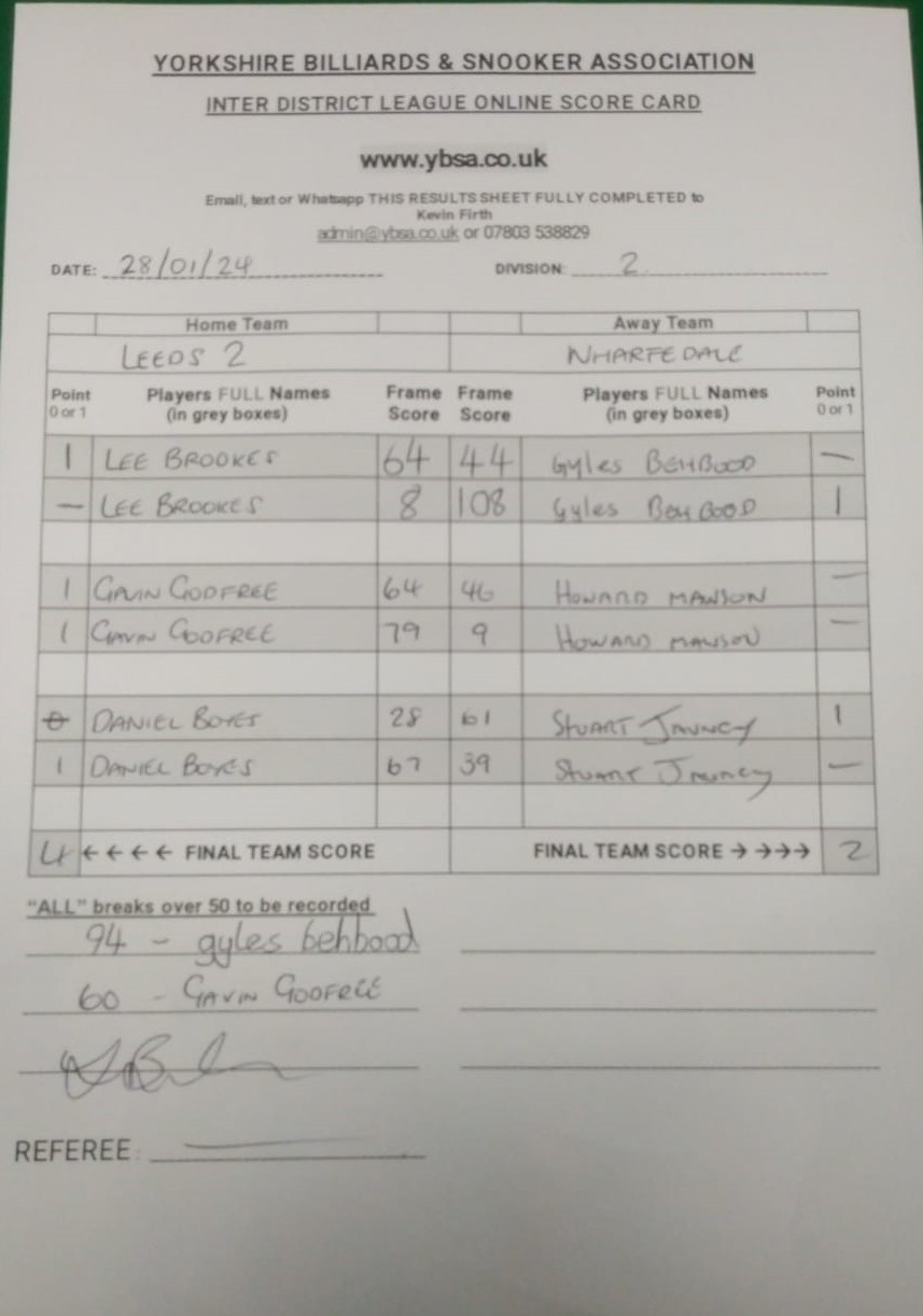 | 27th January 2024 | 7:30 pm | Division Two 2023-24 | 2023/24 | Fixture 5 |