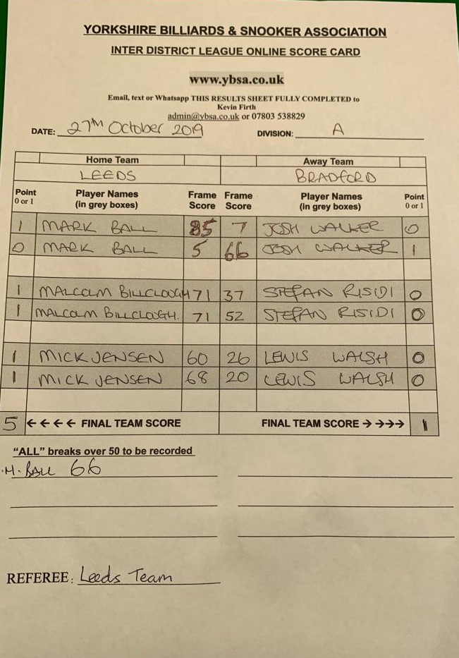 26th October 2019 7:30 pm Division One 2019/20 2019/20 Fixture 1