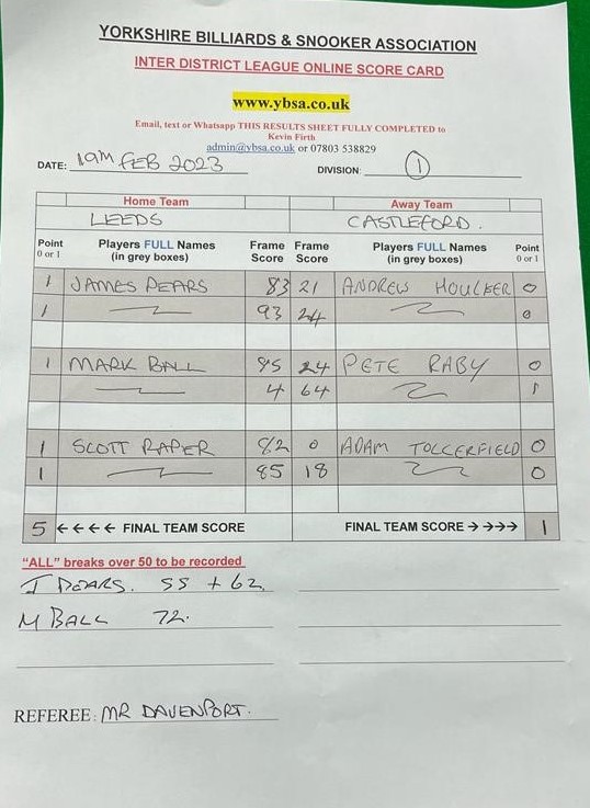 | 18th February 2023 | 7:30 pm | Division One 2022/23 | 2022/23 | Fixture 9 |