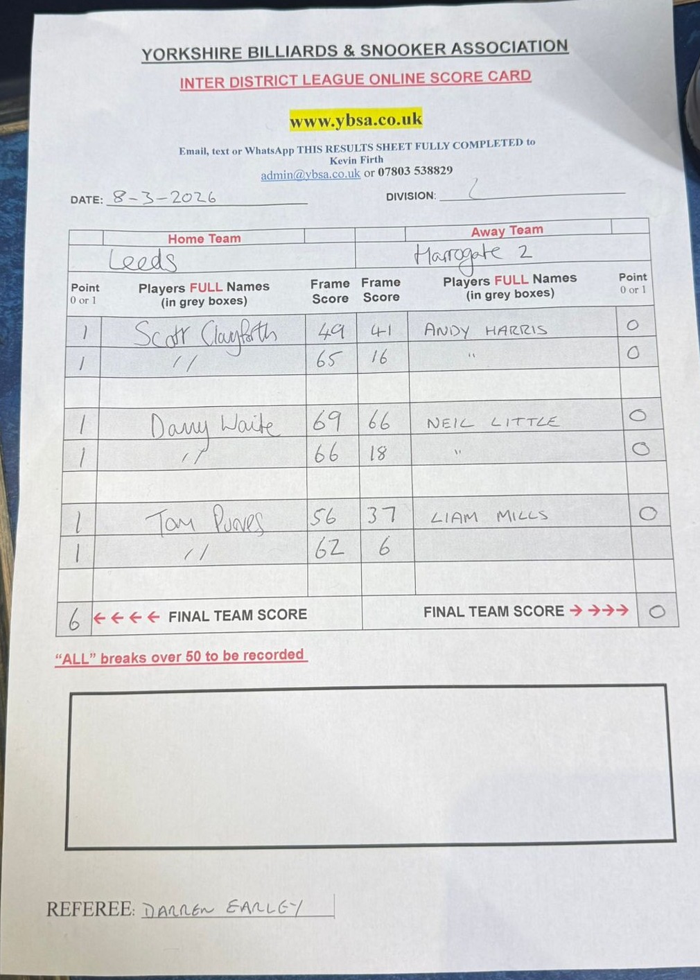 | 7th March 2026 | 7:30 pm | Division Two 2025/26 | 2025/26 | Fixture 10 |