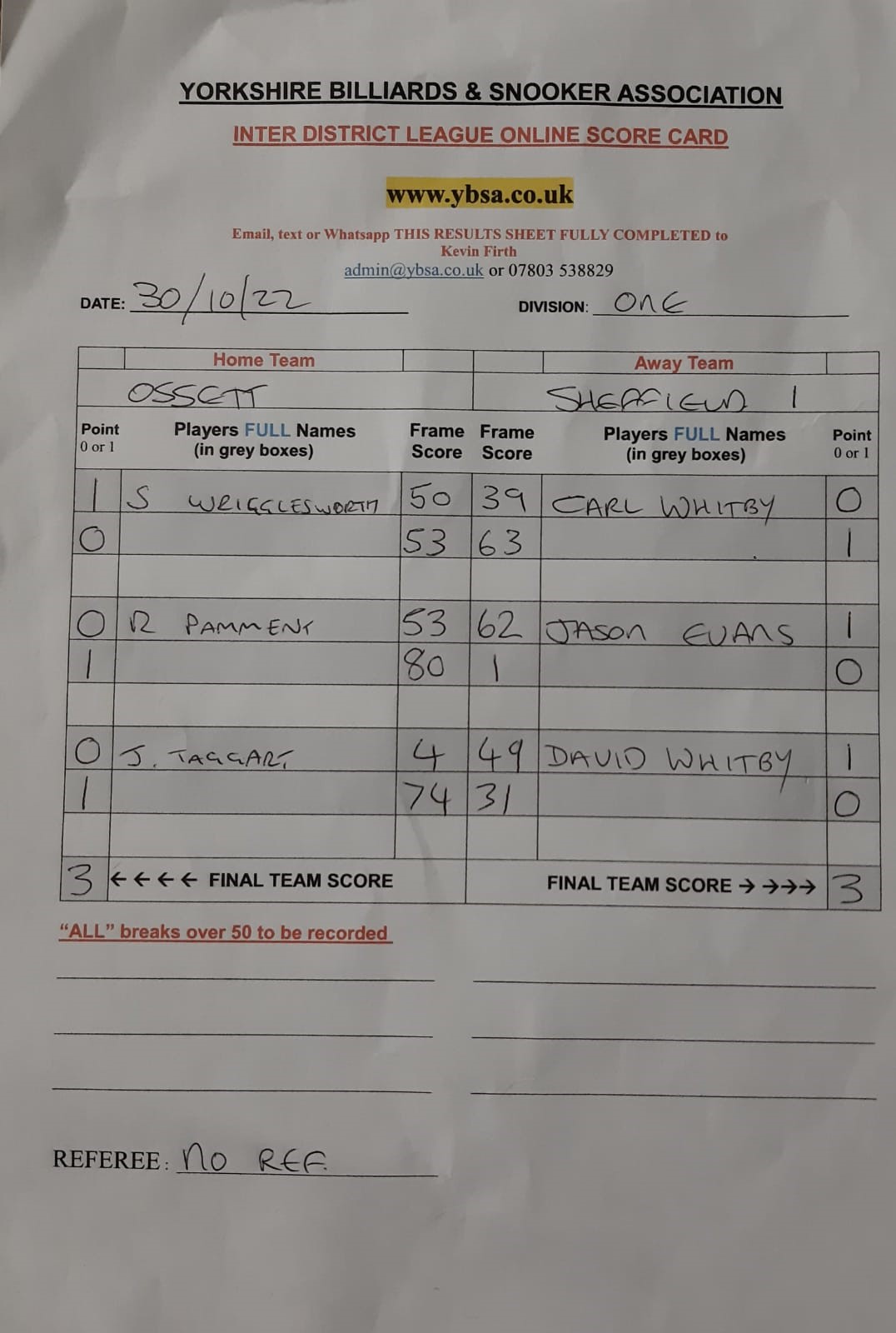 | 29th October 2022 | 7:30 pm | Division One 2022/23 | 2022/23 | Fixture 2 |