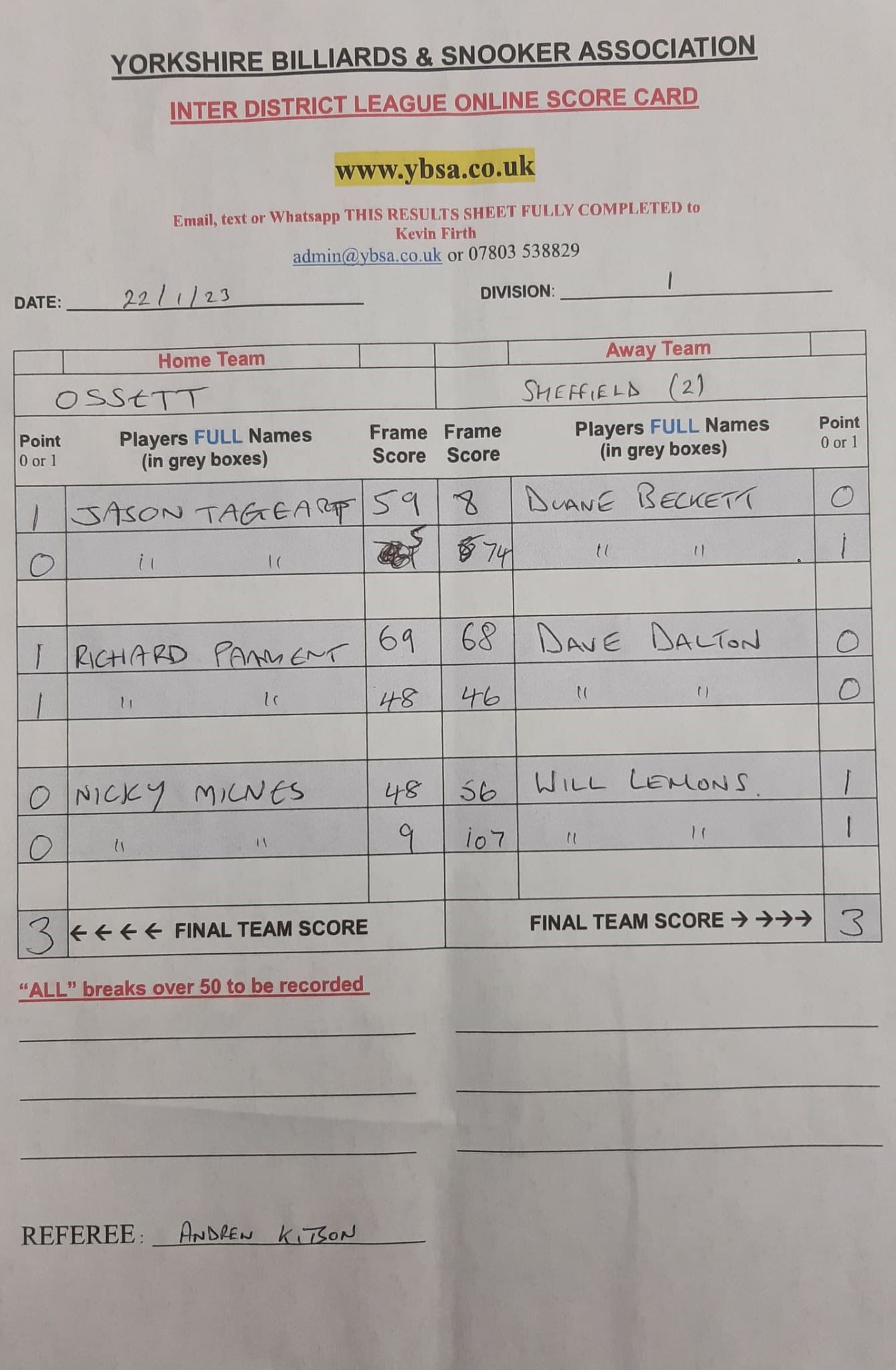 | 21st January 2023 | 7:30 pm | Division One 2022/23 | 2022/23 | Fixture 7 |