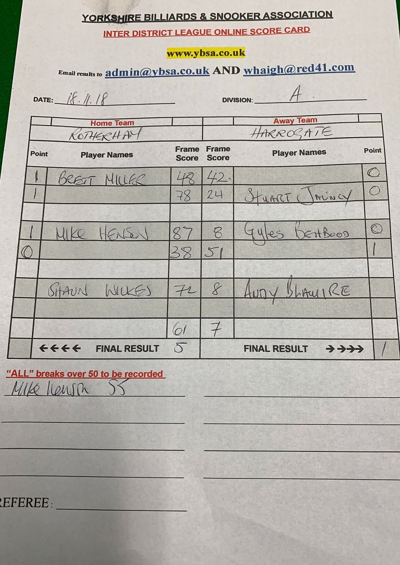 | 17th November 2018 | 7:30 pm | Division One 2018/19 | 2018/19 | Fixture 4 |