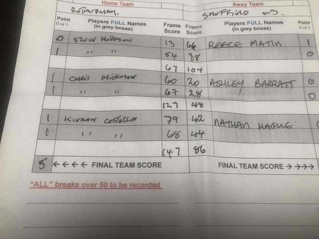 Player First Frame Scores Second Frame Scores Frames Played Frames Won Frames Lost