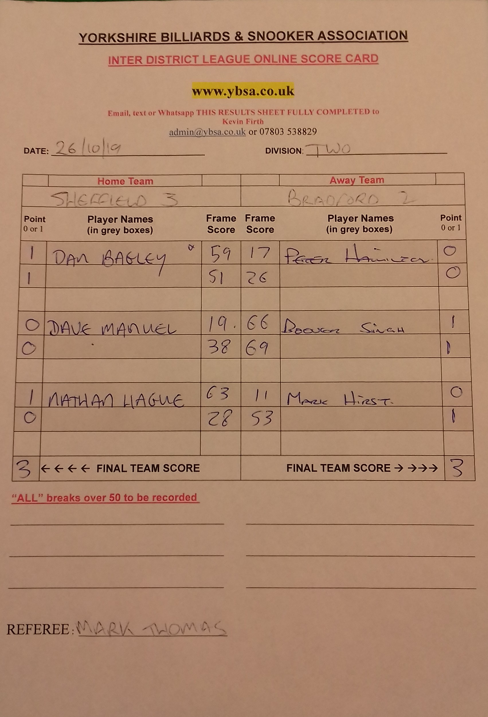 | 26th October 2019 | 7:30 pm | Division Two 2019/20 | 2019/20 | Fixture 1 |