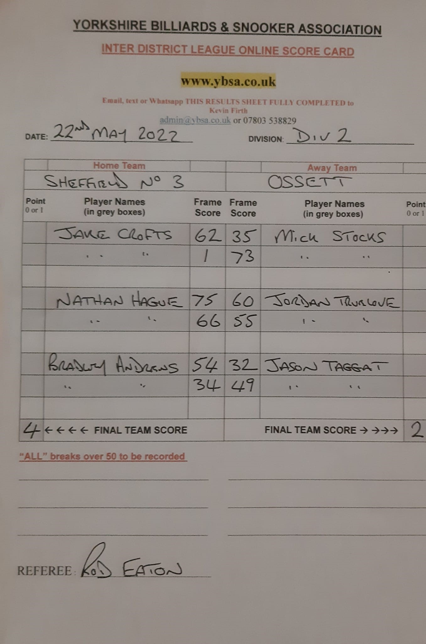 21st May 2022 7:30 pm Division Two 2021/22 2021/22 Fixture 9
