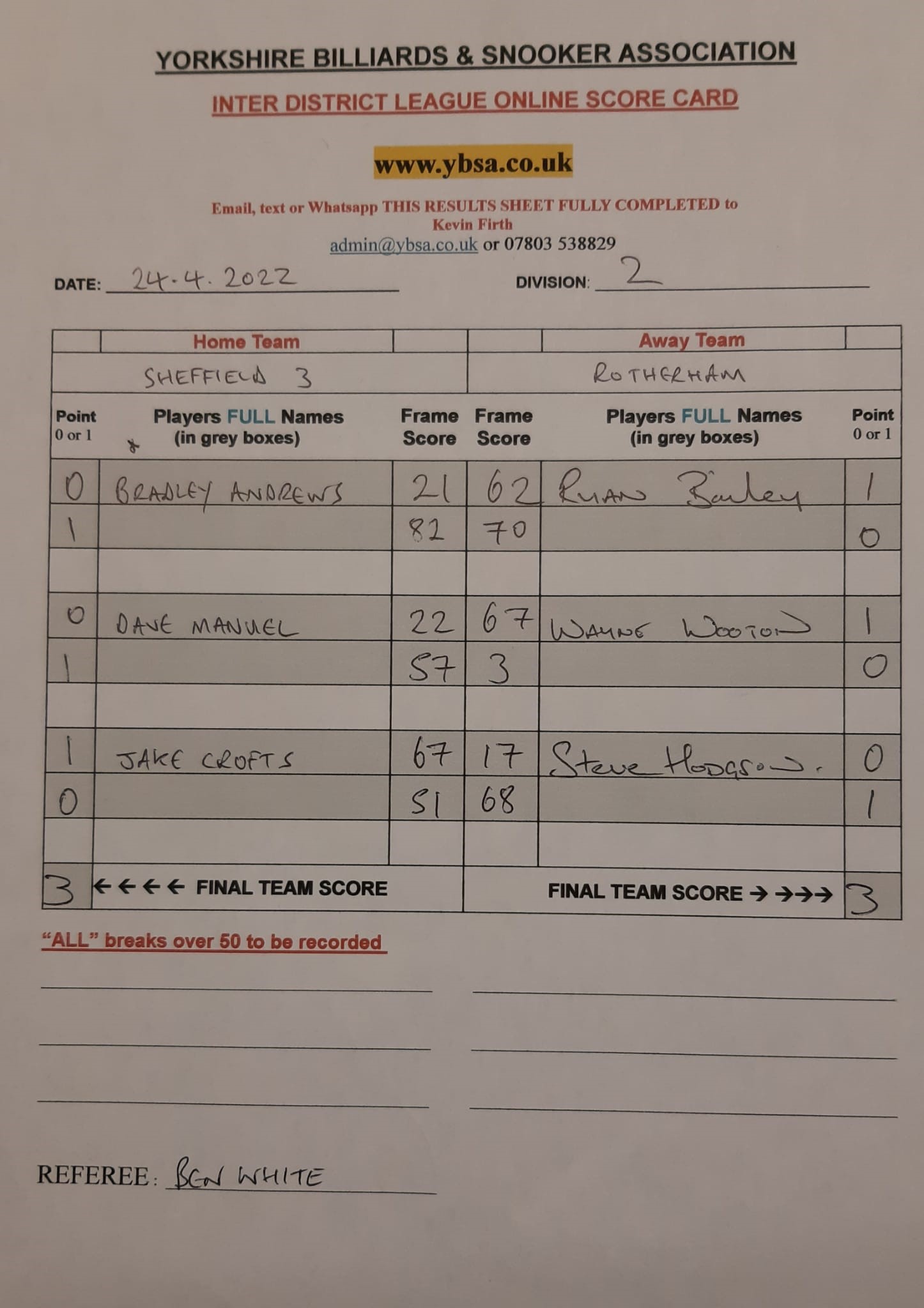 23rd April 2022 7:30 pm Division Two 2021/22 2021/22 Fixture 7