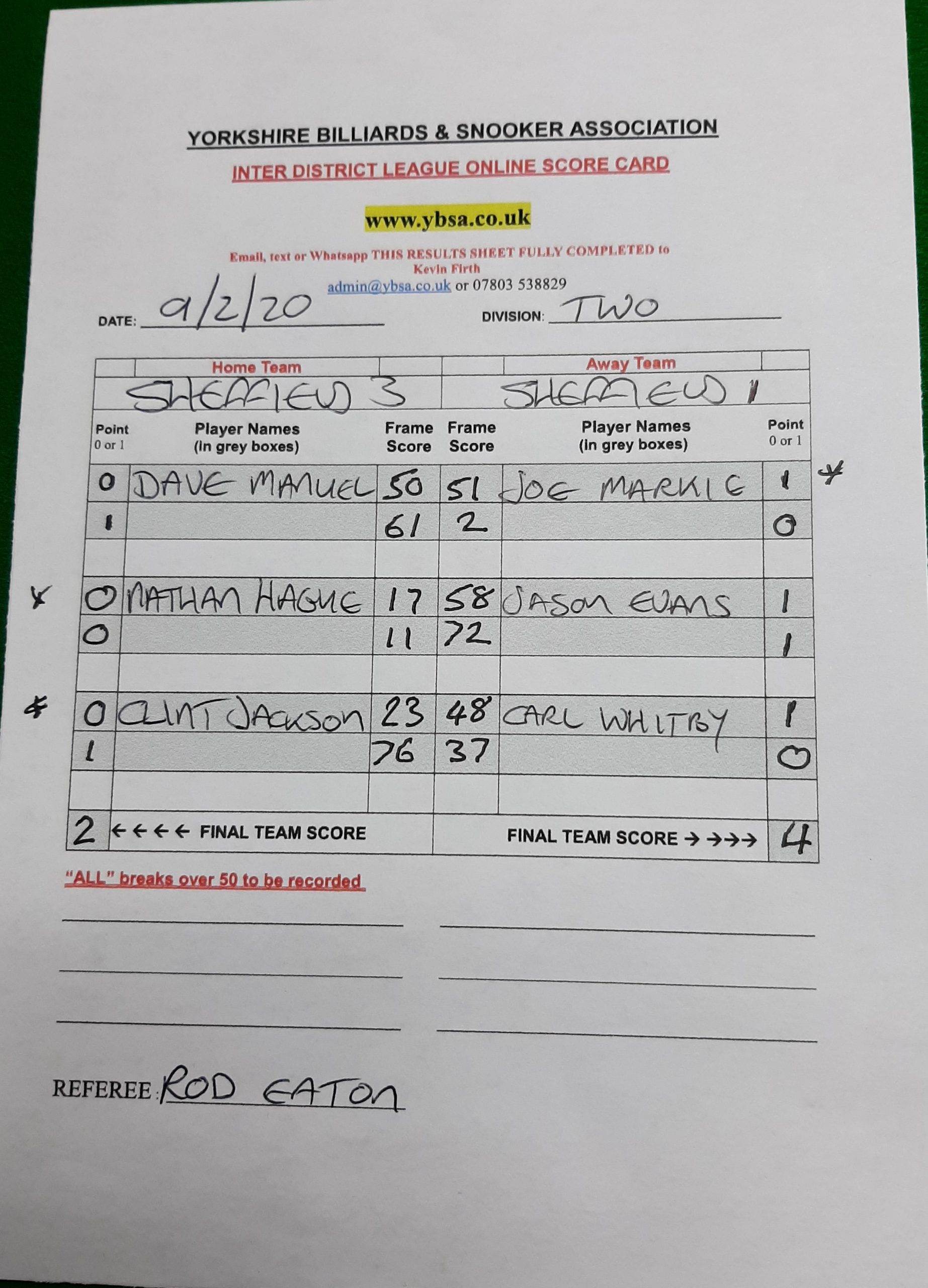 15th February 2020 7:30 pm Division Two 2019/20 2019/20 Fixture 7