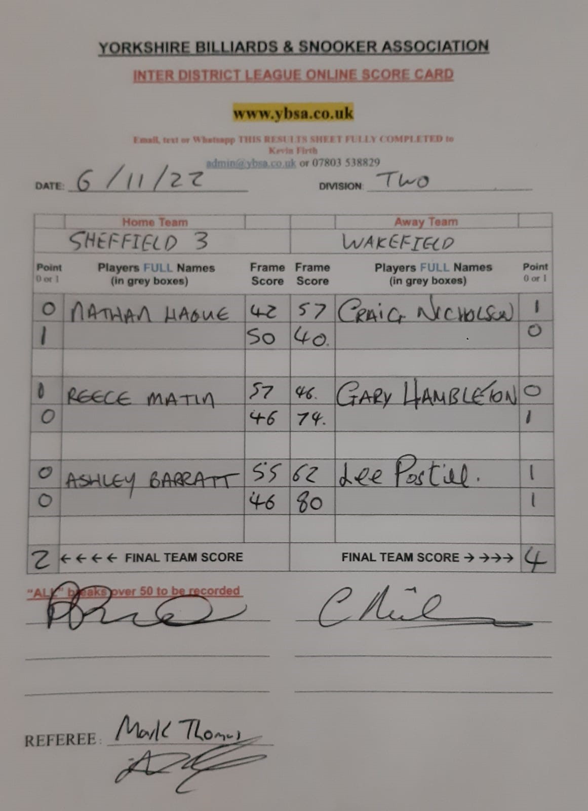 5th November 2022 7:30 pm Division Two 2022/23 2022/23 Fixture 2