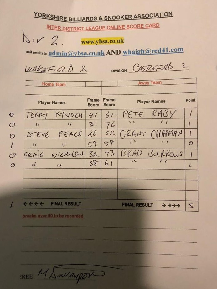 | 20th October 2018 | 7:30 pm | Division Two 2018/19 | 2018/19 | Fixture 2 |
