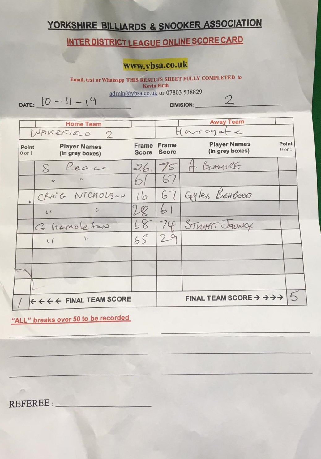 | 9th November 2019 | 7:30 pm | Division Two 2019/20 | 2019/20 | Fixture 2 |