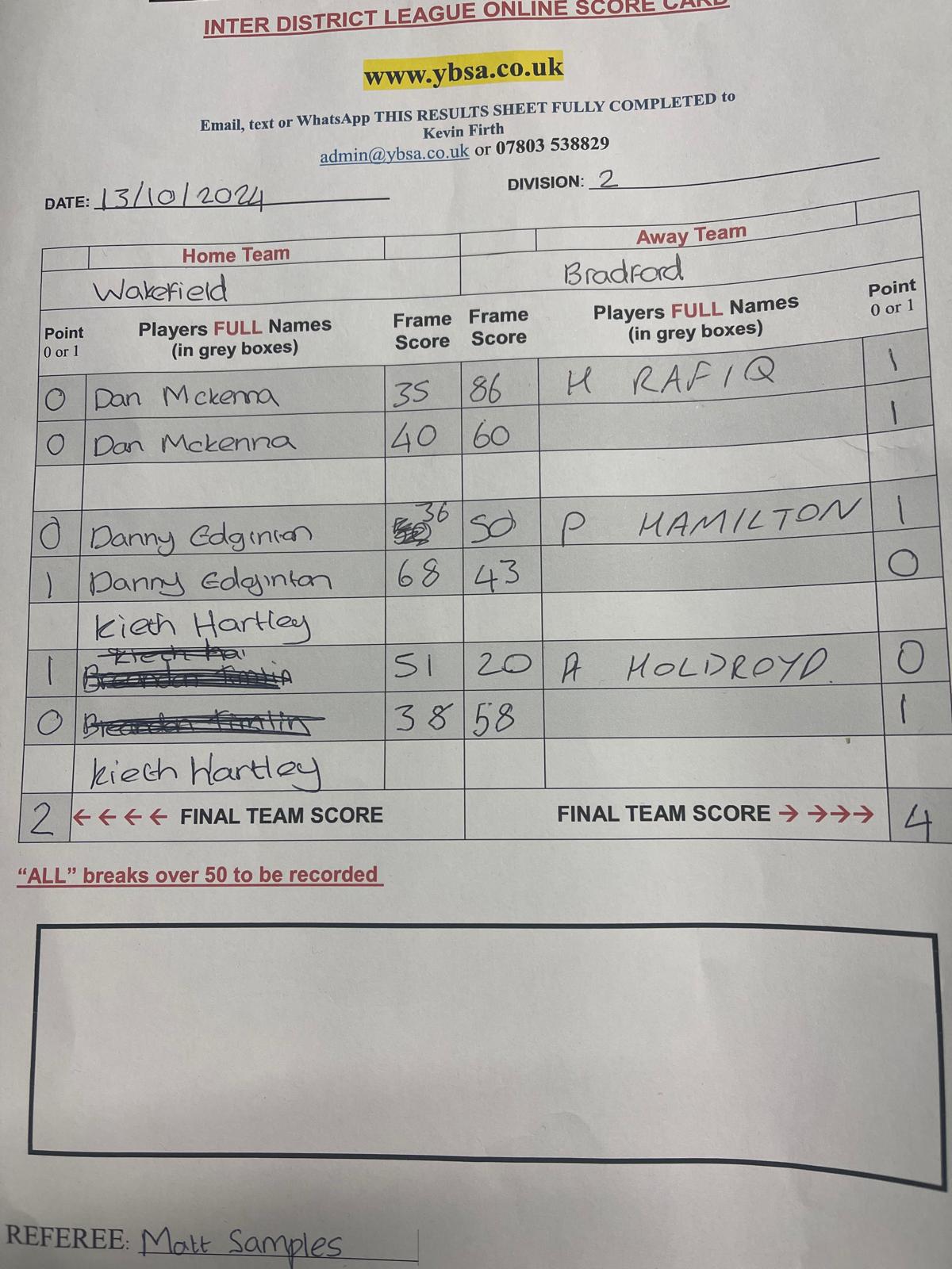 | 12th October 2024 | 7:30 pm | Division Two 2024/25 | 2024/25 | Fixture 2 |