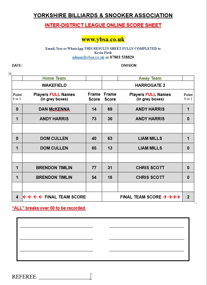 | 18th April 2026 | 7:30 pm | Division Two 2025/26 | 2025/26 | Fixture 12 |