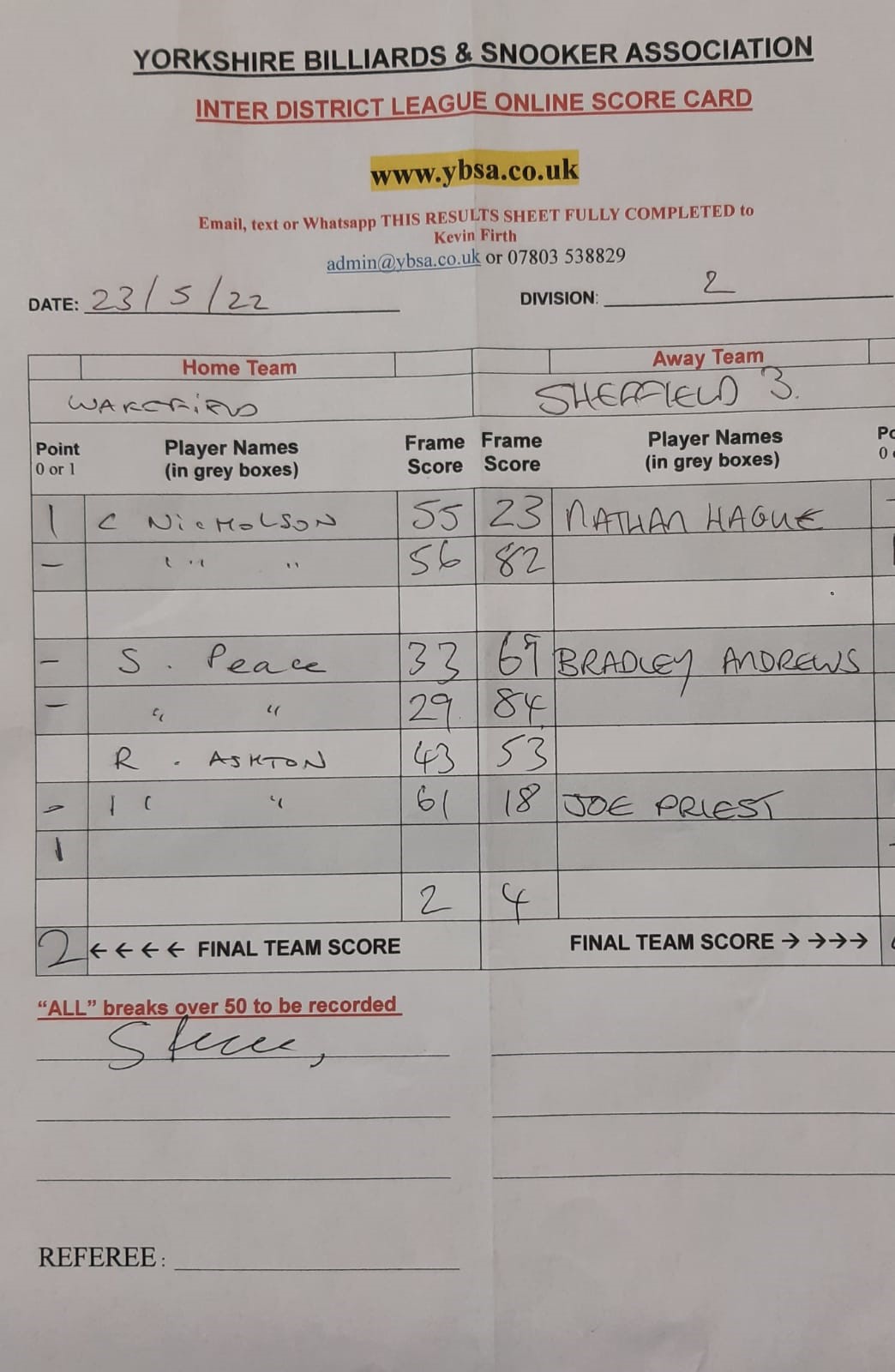 4th June 2022 7:30 pm Division Two 2021/22 2021/22 Fixture 10