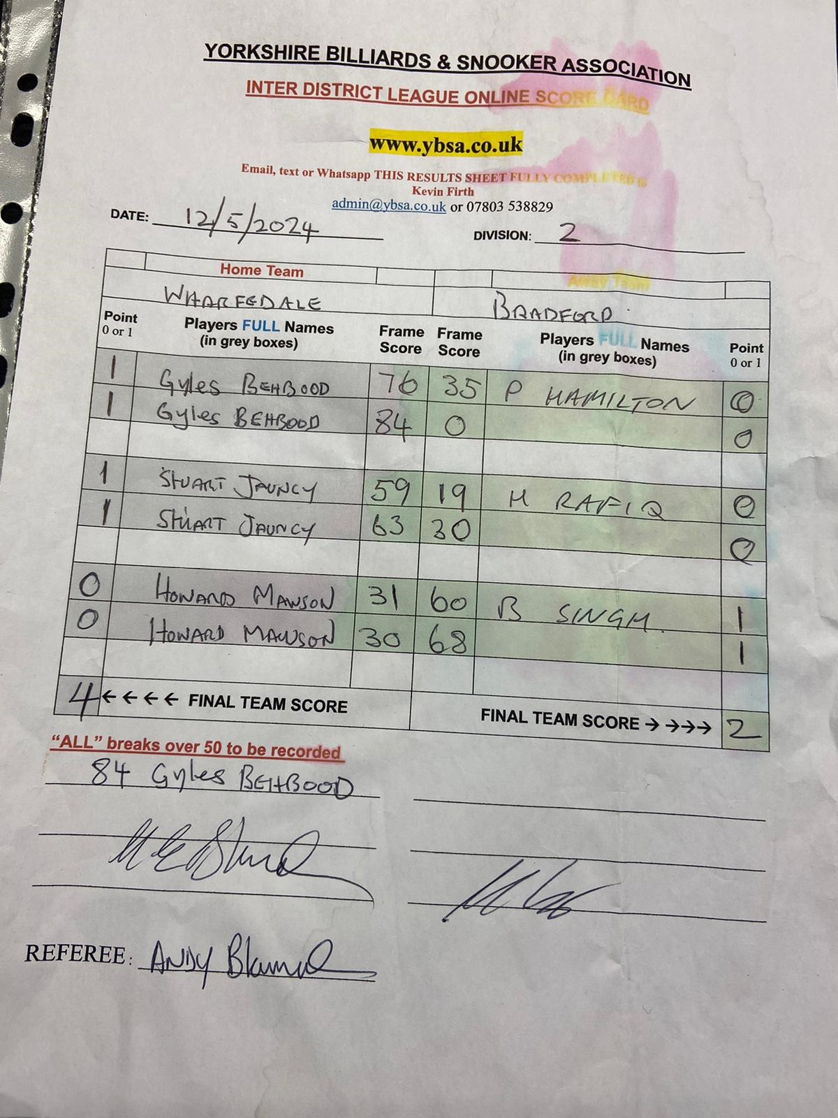 | Bradford | 2 - 4 | Wharfedale |