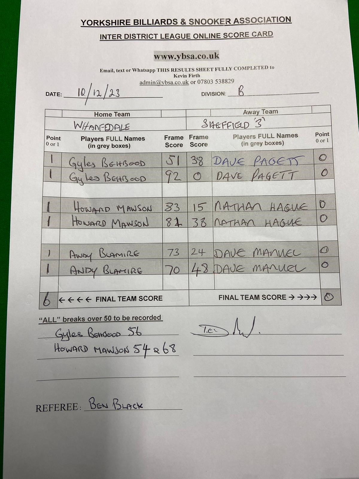 | 16th December 2023 | 7:30 pm | Division Two 2023-24 | 2023/24 | Fixture 3 |