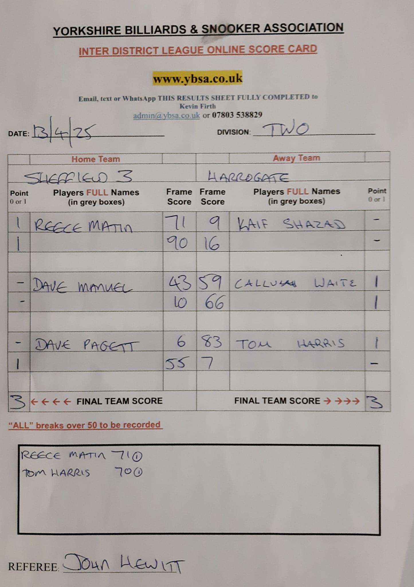 Sheffield 3 vs Harrogate 2