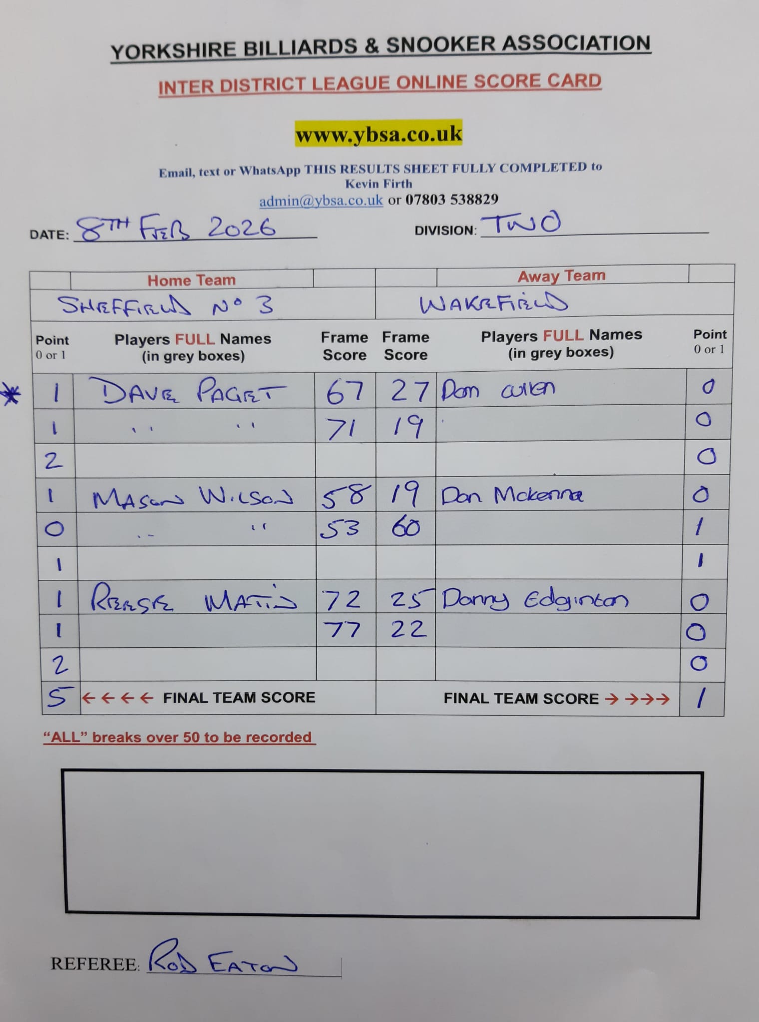 Sheffield 3 vs Wakefield